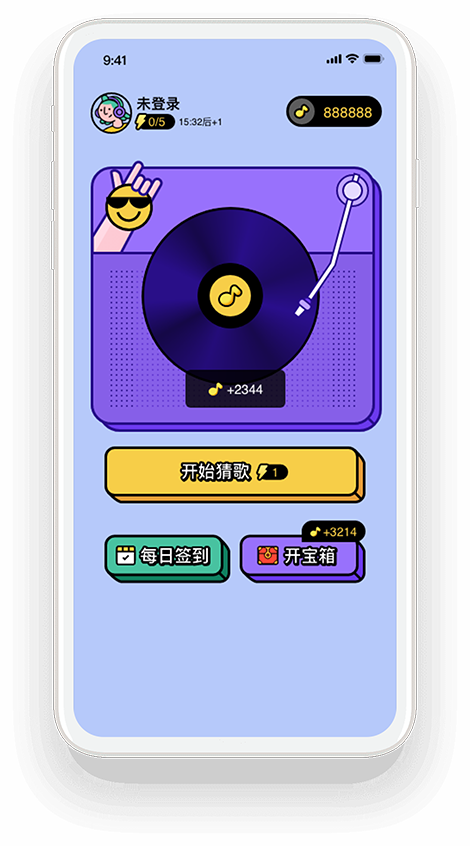 新人登录即可开始猜歌!根据一段歌曲猜出该歌曲的名字,猜对即可过关;