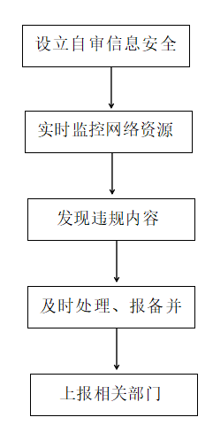 我公司按照《网络文化经营单位内容自审管理办法》规定,建立自审管理制度,对网络文化产品及服务内容进行事前审核,网络文化产品及服务的内容审核由2名以上审核人员实施,审核人员填写审核意见并签字后,报本单位内容管理负责人复核签字。我公司通过技术手段对网站(平台)运行的产品及服务的内容进行 实时监管,发现违规内容的要立即停止提供,保存有关记录,内容审核记录的保存期不少于2年,重大问题向所在地省级文化行政部门报告。